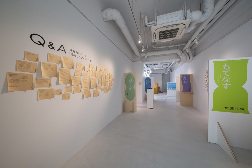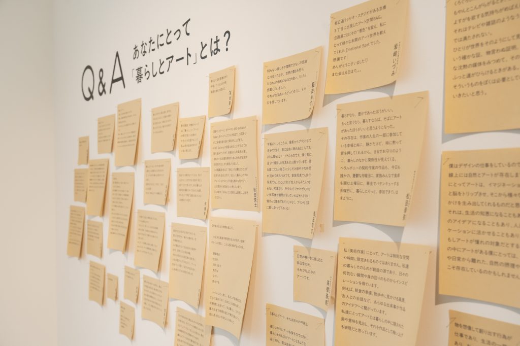 今回の展覧会、入口をからは作品が隠れていて一つも見えない構成になっており、出展していた私たちも迷い込むように奥へ奥へと引き込まれながら、面白く拝見しました。また、あなたにとって「暮らしとアートとは?」というメッセージの展示も、これまで展覧会に参加したそれぞれの作家やデザイナー、クリエイターの考えがそのまま体現されていて、大変興味深かったです。