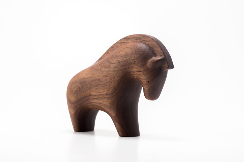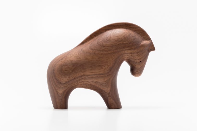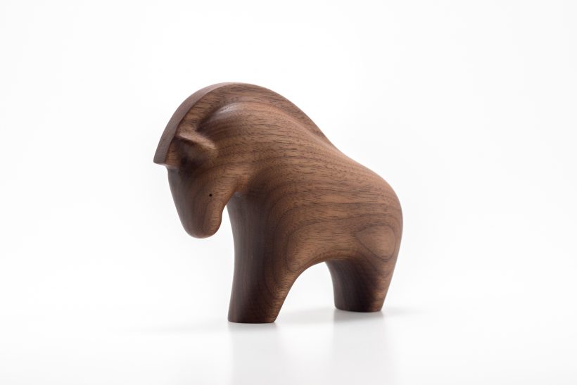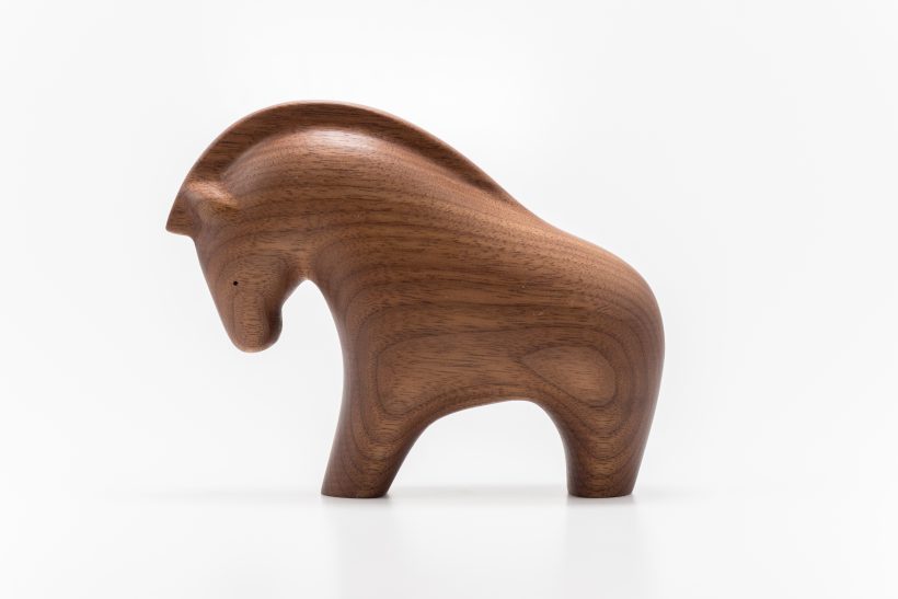 ウォールナットの木でできたウマのオブジェです。